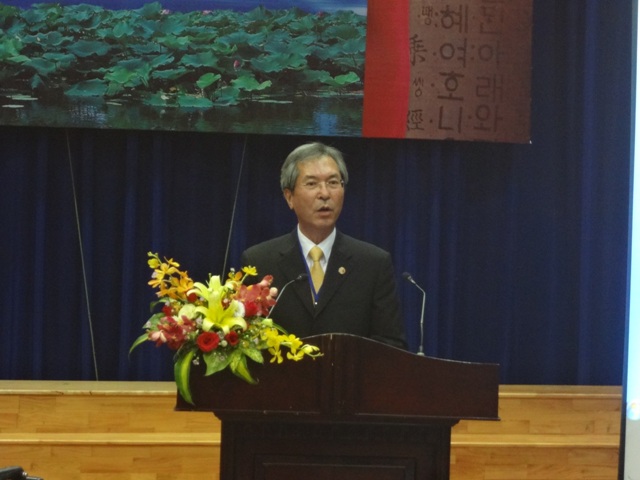 GS.TS. Park Kwang Joo – Hội trưởng Hội yêu Việt Nam VESAMO đọc diễn văn chào mừng.