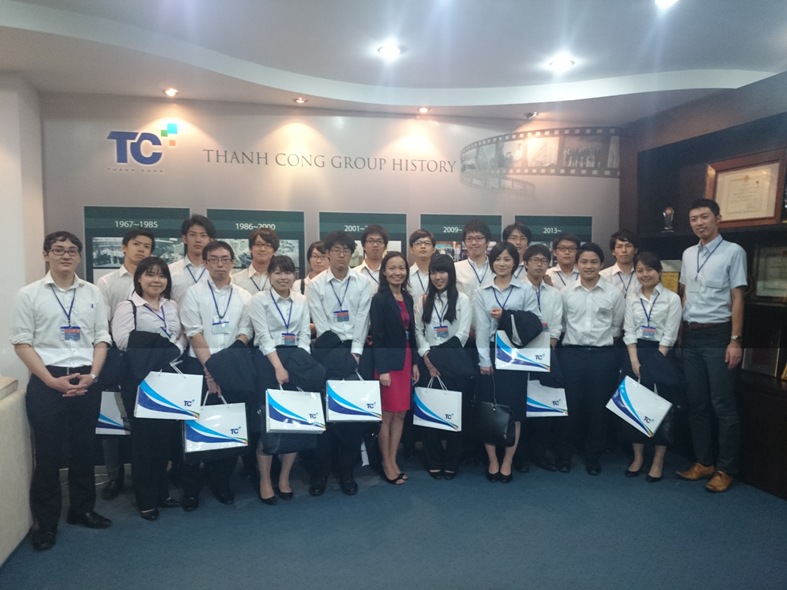 Teijin employees did many field trips in HCMC in order to prepare for their projects. They visited Ben Thanh Market, Parks 23/9 and 30/4, universities, niche stores such as those selling helmets, ao dai, raincoats, motorbikes, etc. Additionally, the group had a chance to visit and work with the Thanh Cong Textile Group, Saigon Transportation Mechanical Corporation (SAMCO) An Lac and the HCMC Department of Planning and Investment. They were warmly welcomed, getting deeper understanding of working environments as well as gaining more experience which would be useful for their later work and projects in Japan.